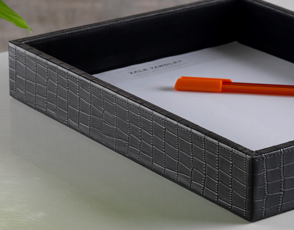 Prestige Black Crocodile Embossed Leather A4 Letter Tray