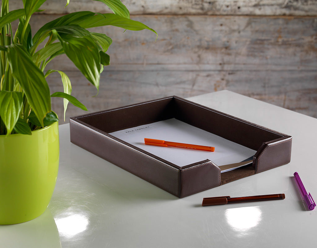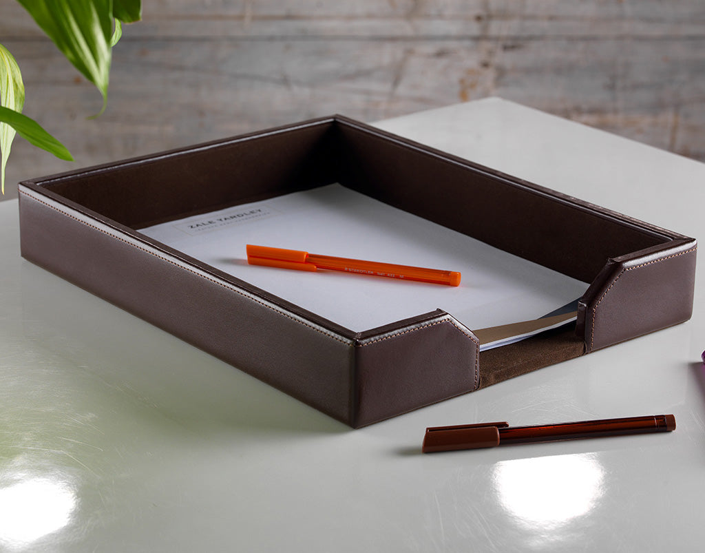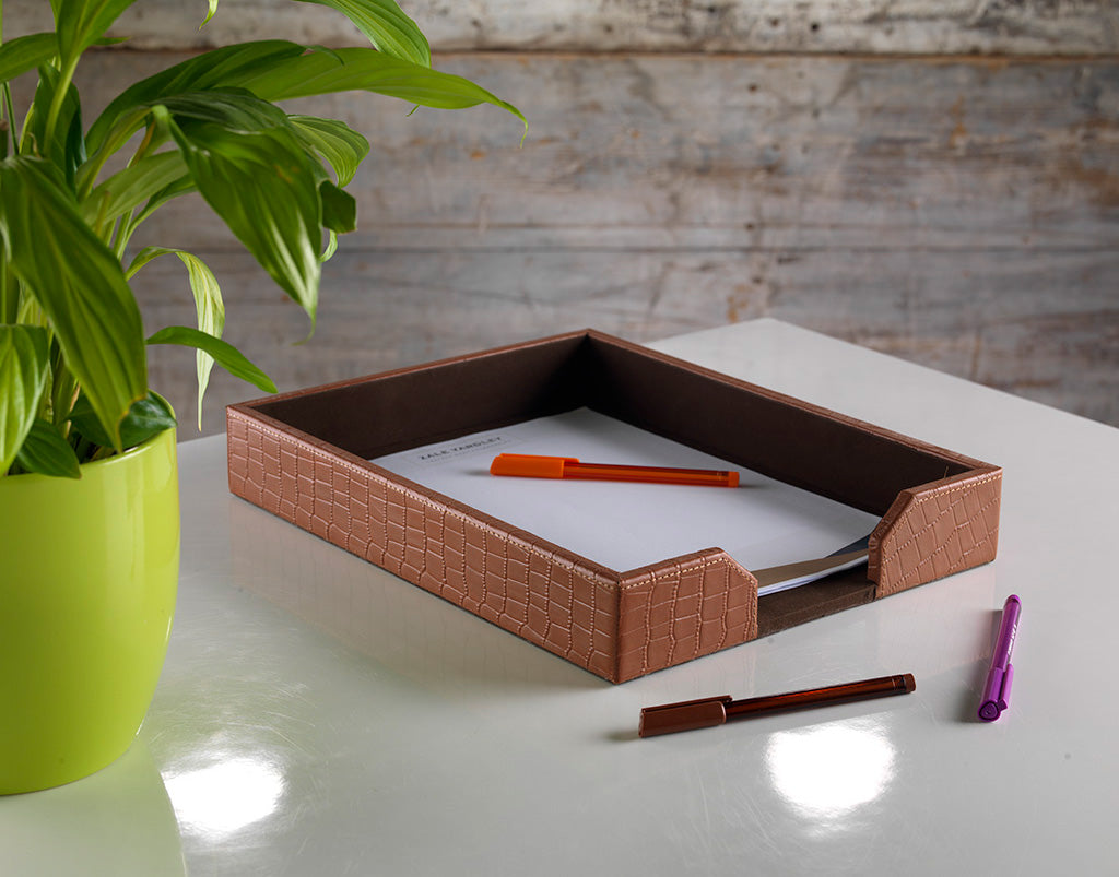Prestige Tan Brown Crocodile Embossed Leather A4 Letter Tray