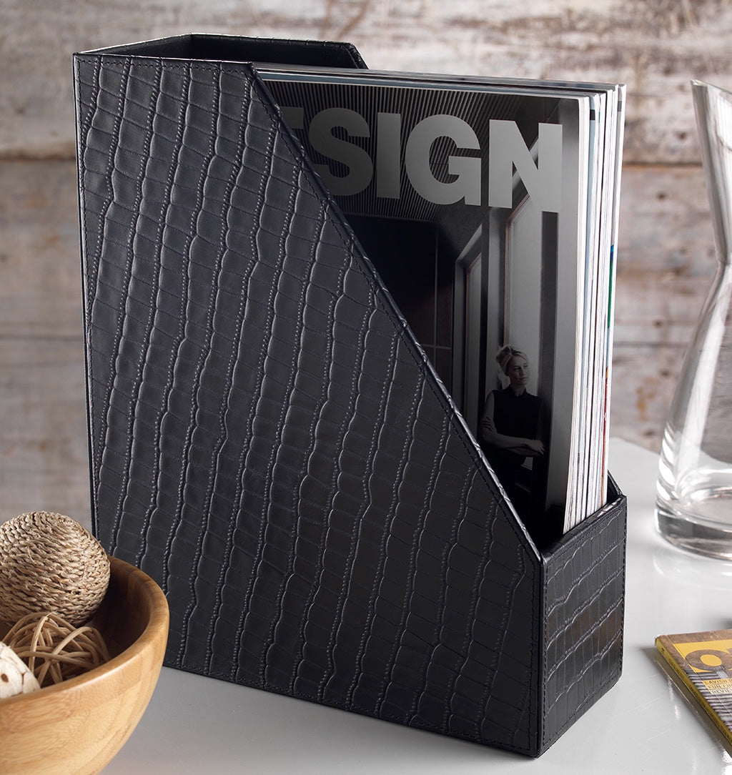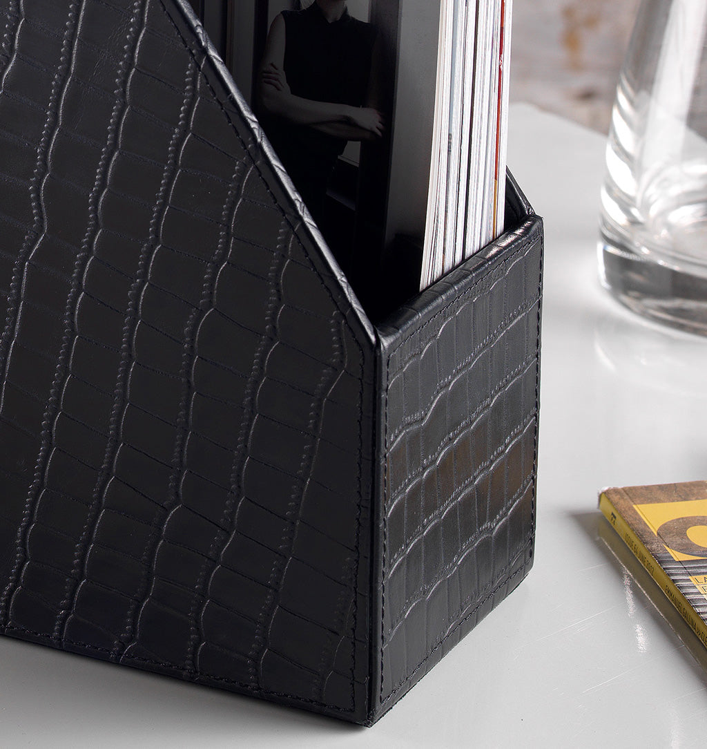 Prestige Black Crocodile Embossed Leather A4 Magazine Rack