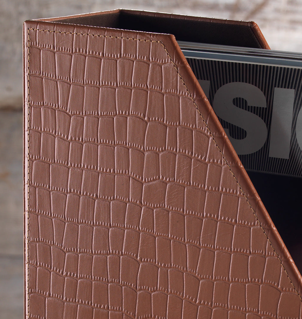 Prestige Tan Brown Crocodile Embossed Leather A4 Magazine Rack