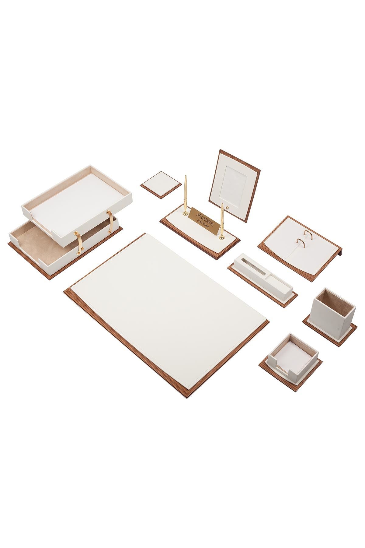 Star luxury desk set is designed to decorate and organize your desk and give you nice and tidy table which you will like to work in. Thanks to its design and 11 useful accessories, it also gives a deep impression on your visitors.