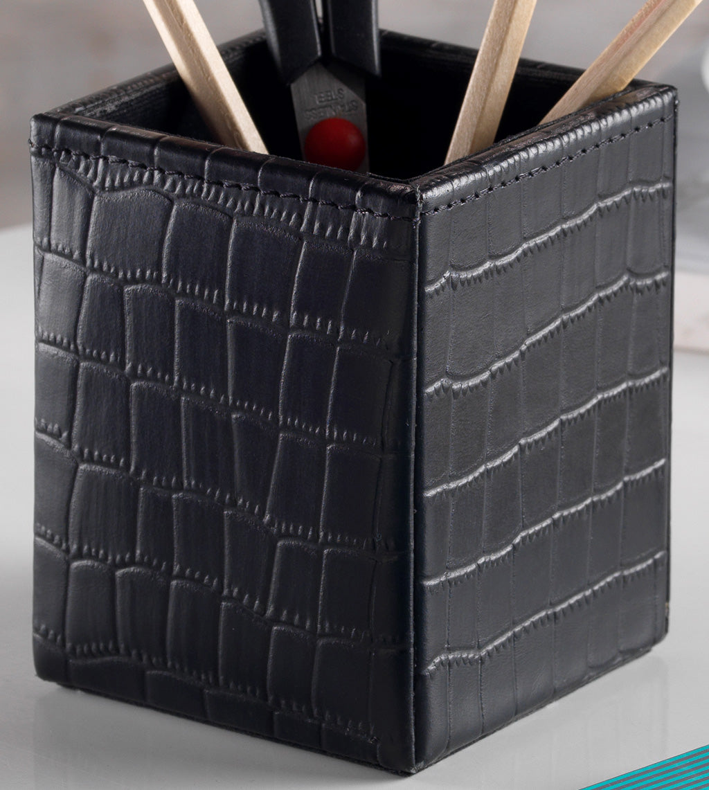 Prestige Black Crocodile Embossed Leather Pen Cup