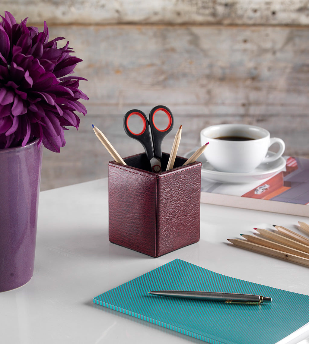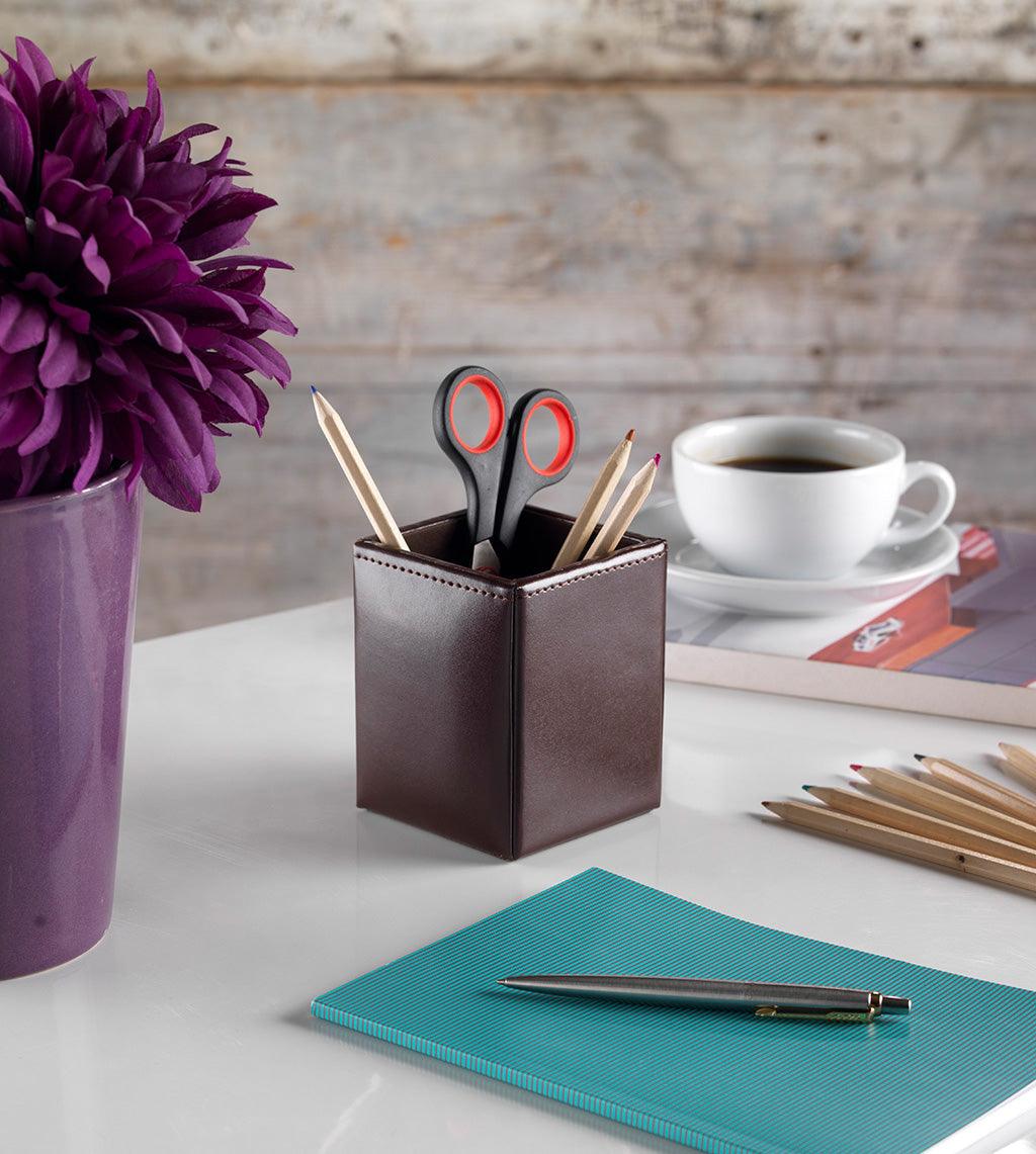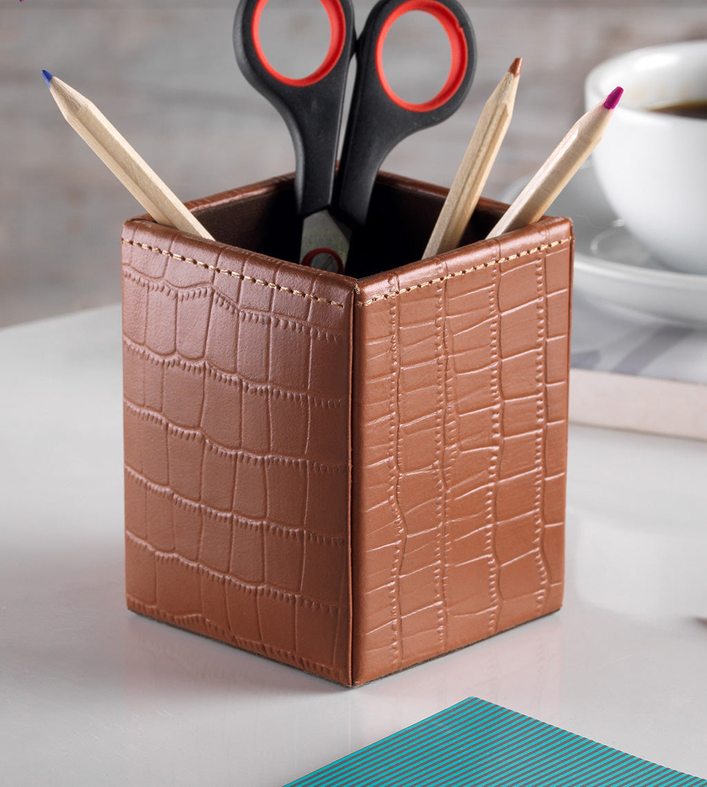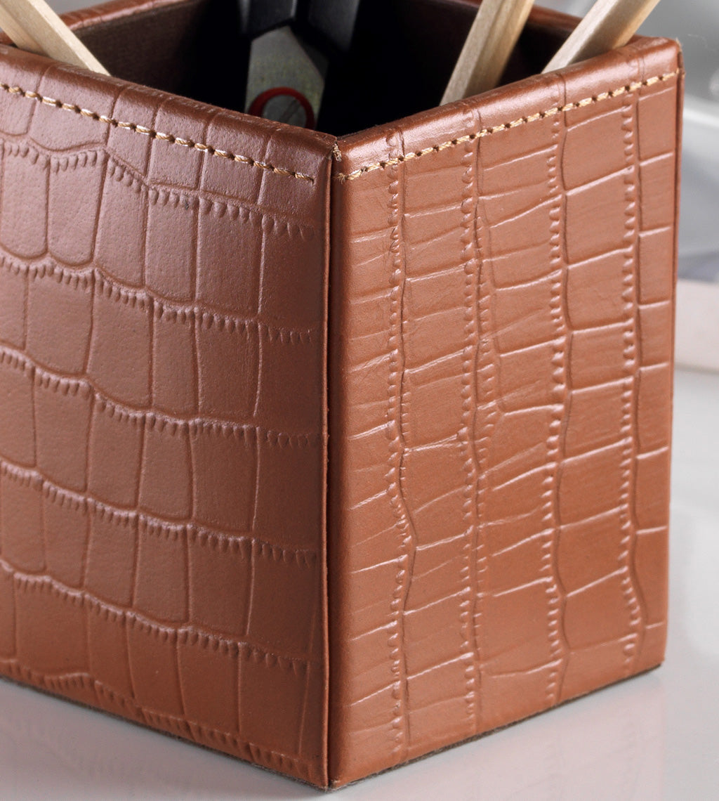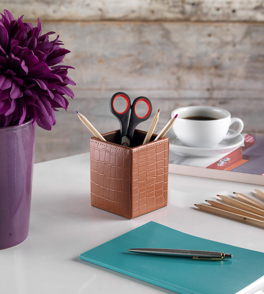 Prestige Tan Brown Crocodile Embossed Leather Pen Cup