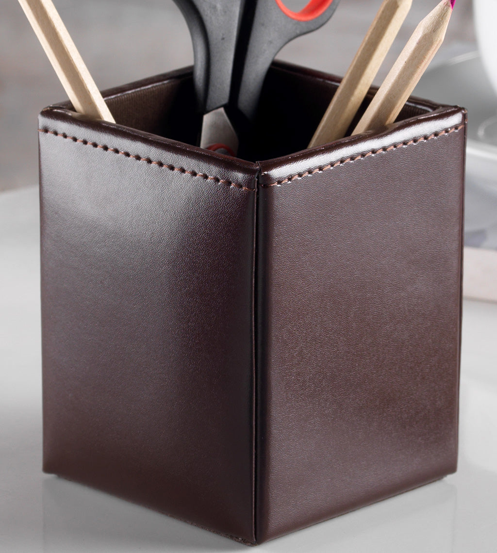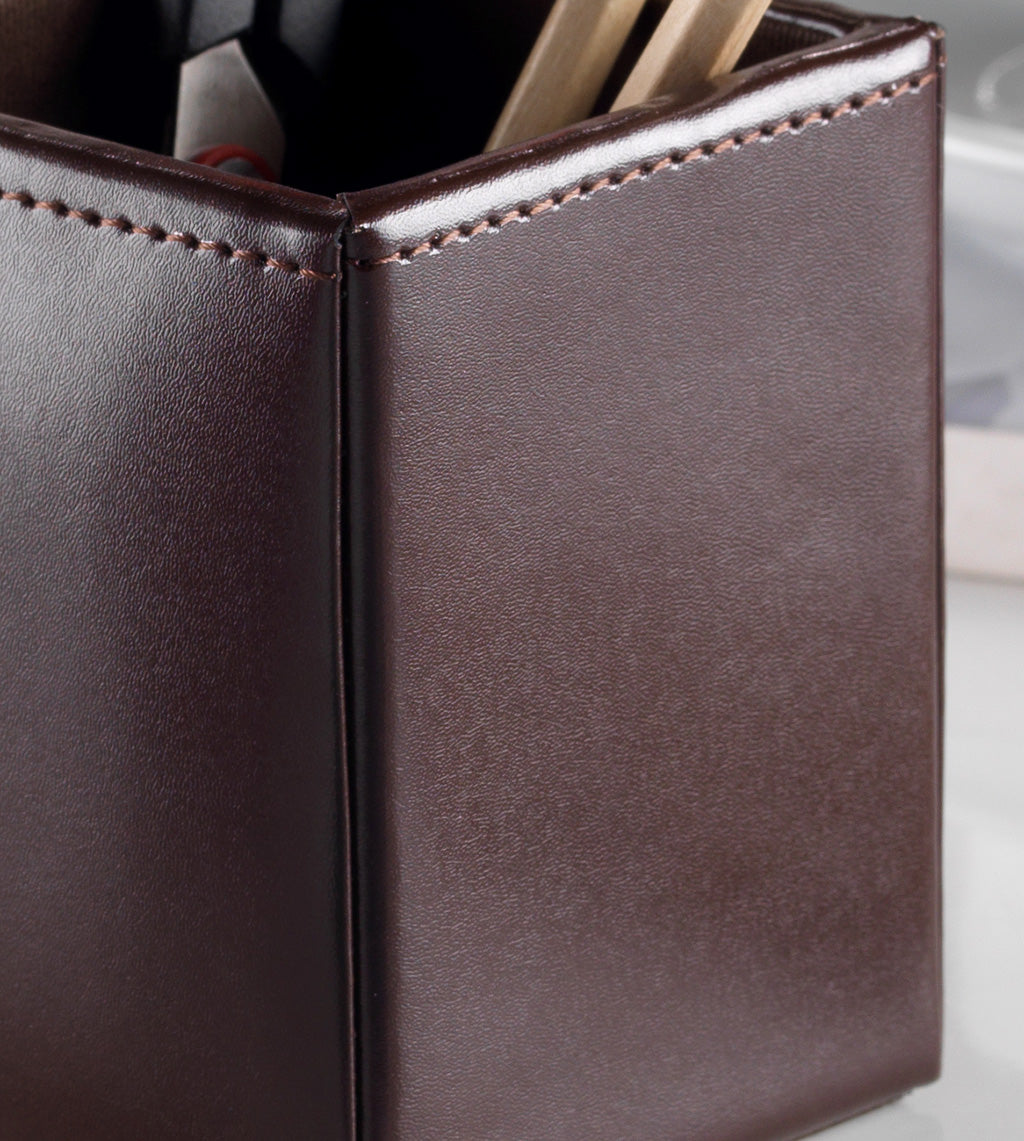 Classic Brown Bonded Leather Pen Cup