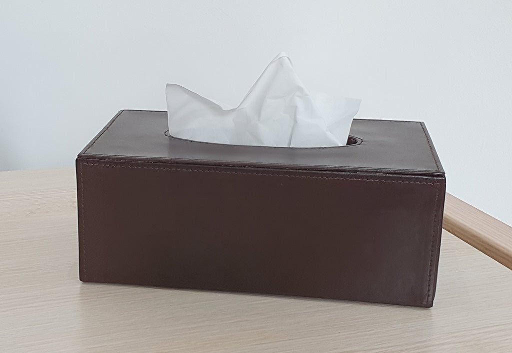 Rectangular Tissue Box Holder in Smooth Brown Bonded Leather