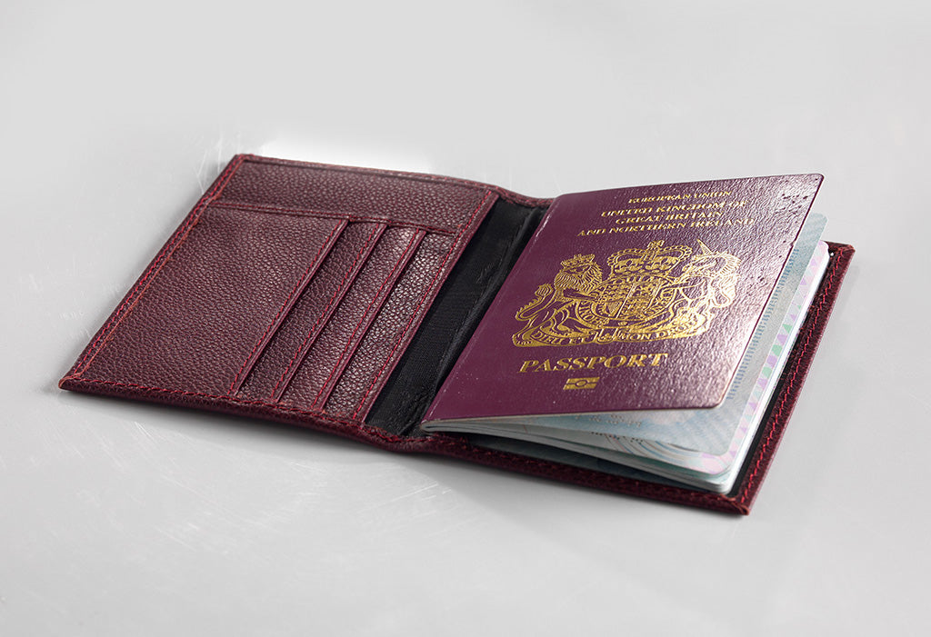 Burgundy Top Grain Leather Slim Fit Passport Holder and Travel Wallet