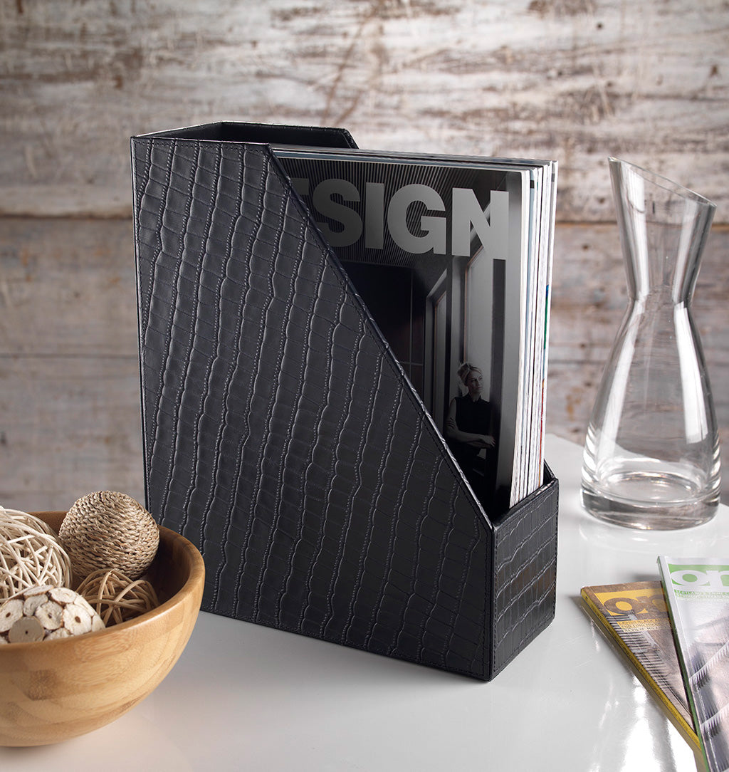 Prestige Black Crocodile Embossed Leather A4 Magazine Rack