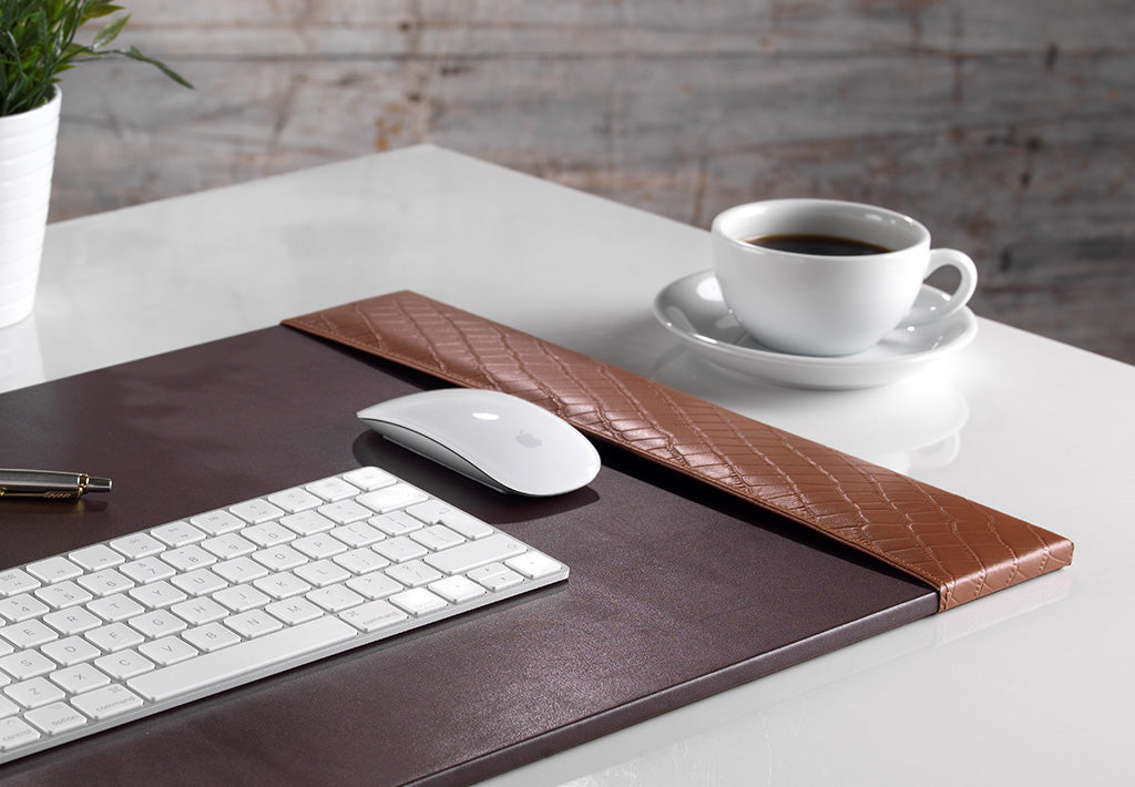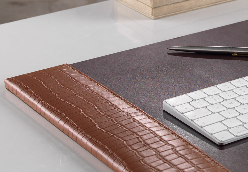 Prestige Tan Brown Crocodile Embossed Leather Desk Pad 76 x 46cm
