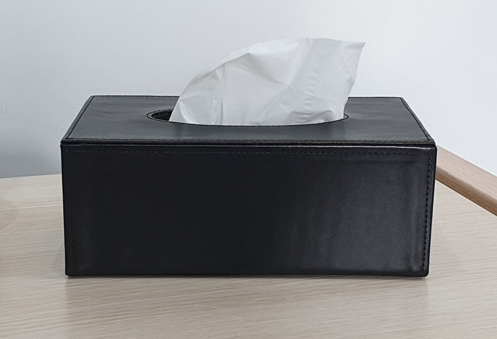 Rectangular Tissue Box Holder in Smooth Black Bonded Leather